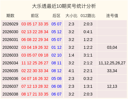 最近10期大乐透奖号统计表